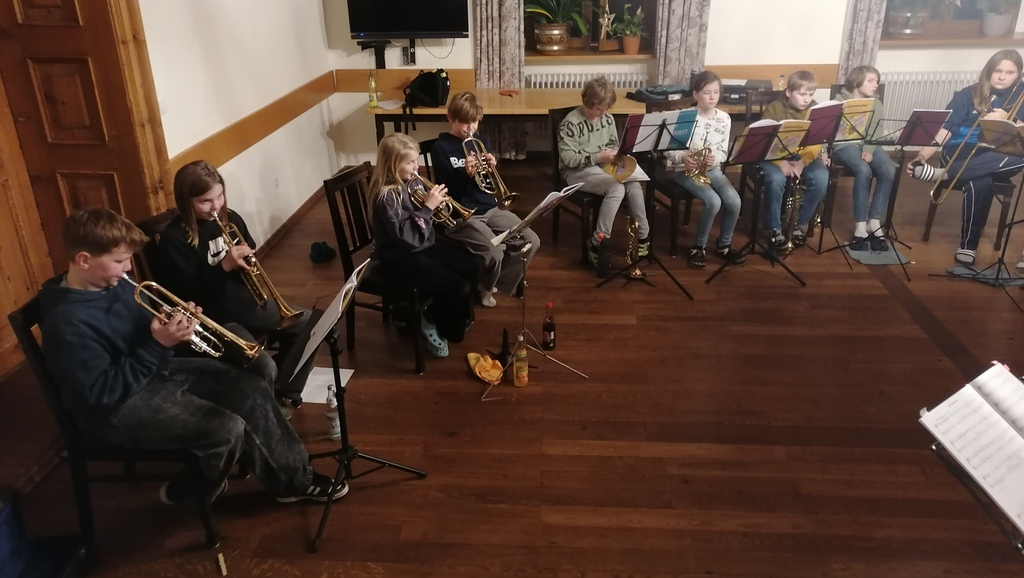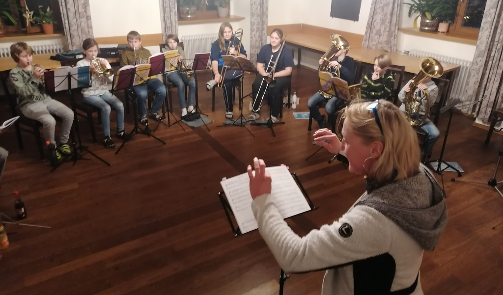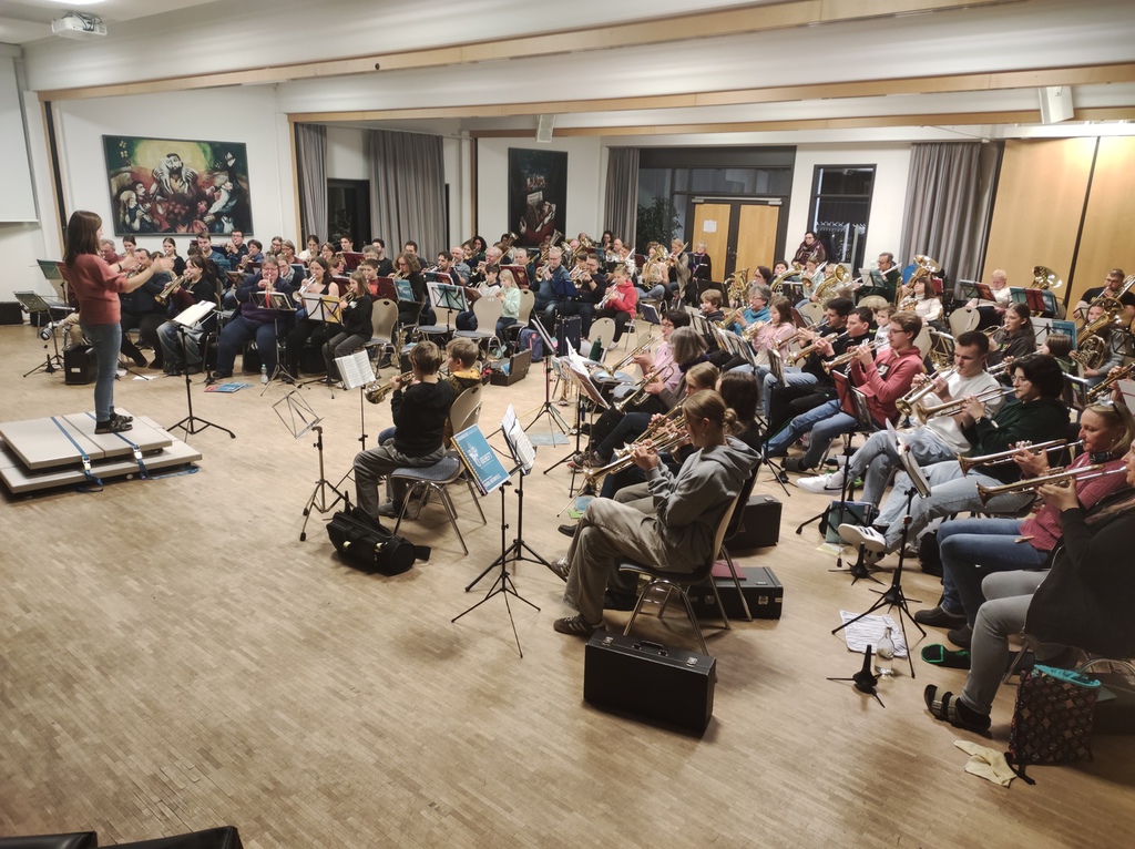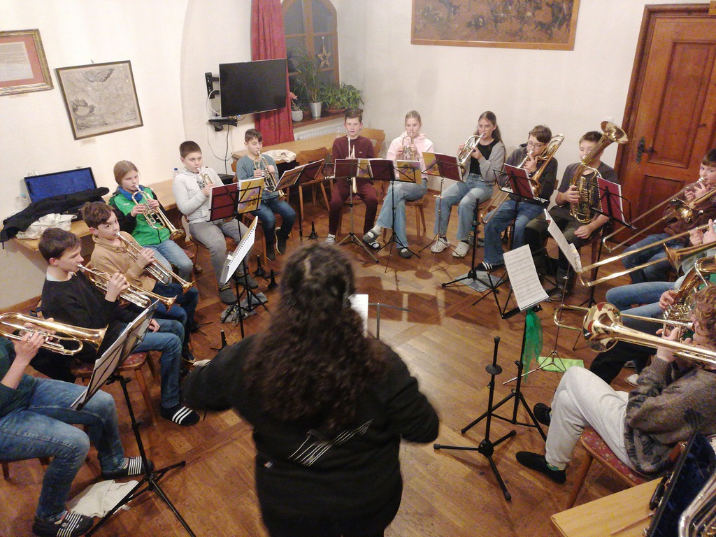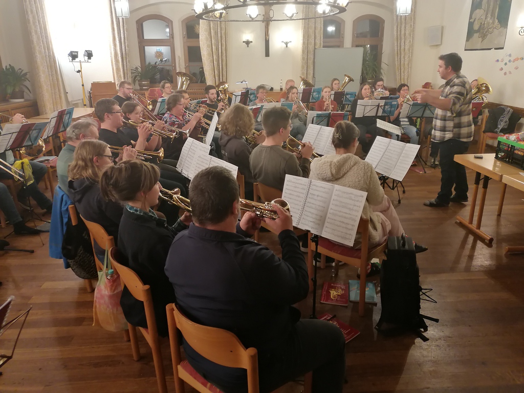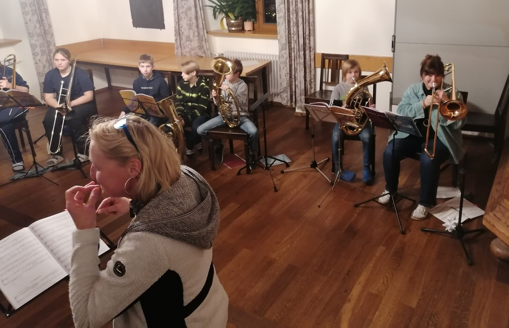 Während des Probenwochenendes im Haus Silberbach bei Selb wurde fleißig die aktuelle Bläserliteratur geübt. Ebenfalls war ein Dozent des Landesverbands für einen Tag vor Ort.